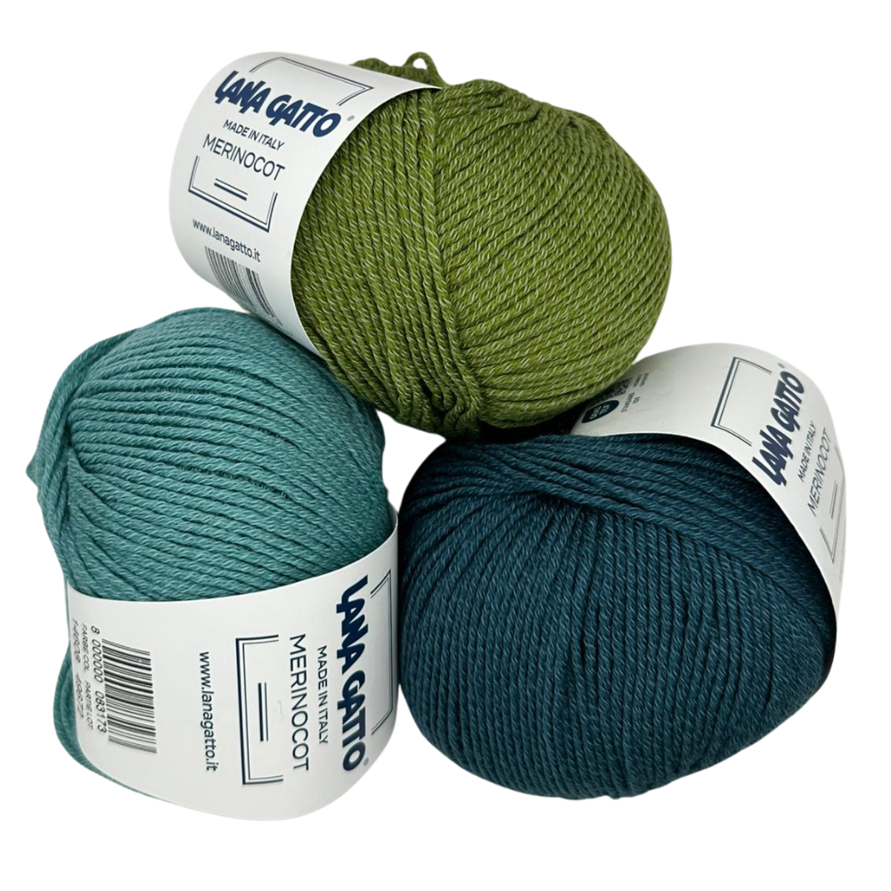 Lana Gatto Merinocot este un fir de tricotat premium, produs în Italia, realizat dintr-un amestec perfect echilibrat de lână merinos extrafină (53%) și bumbac (47%). Este ideal pentru haine purtabile tot anul: pulovere, bluze, pături pentru bebeluși, caciuli sau articole tricotate pentru copii.